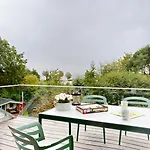An outdoor dining area with coffee and tea making facilities are at the guests' disposal. On-site self-catering also includes a refrigerator, an oven, and kitchenware.